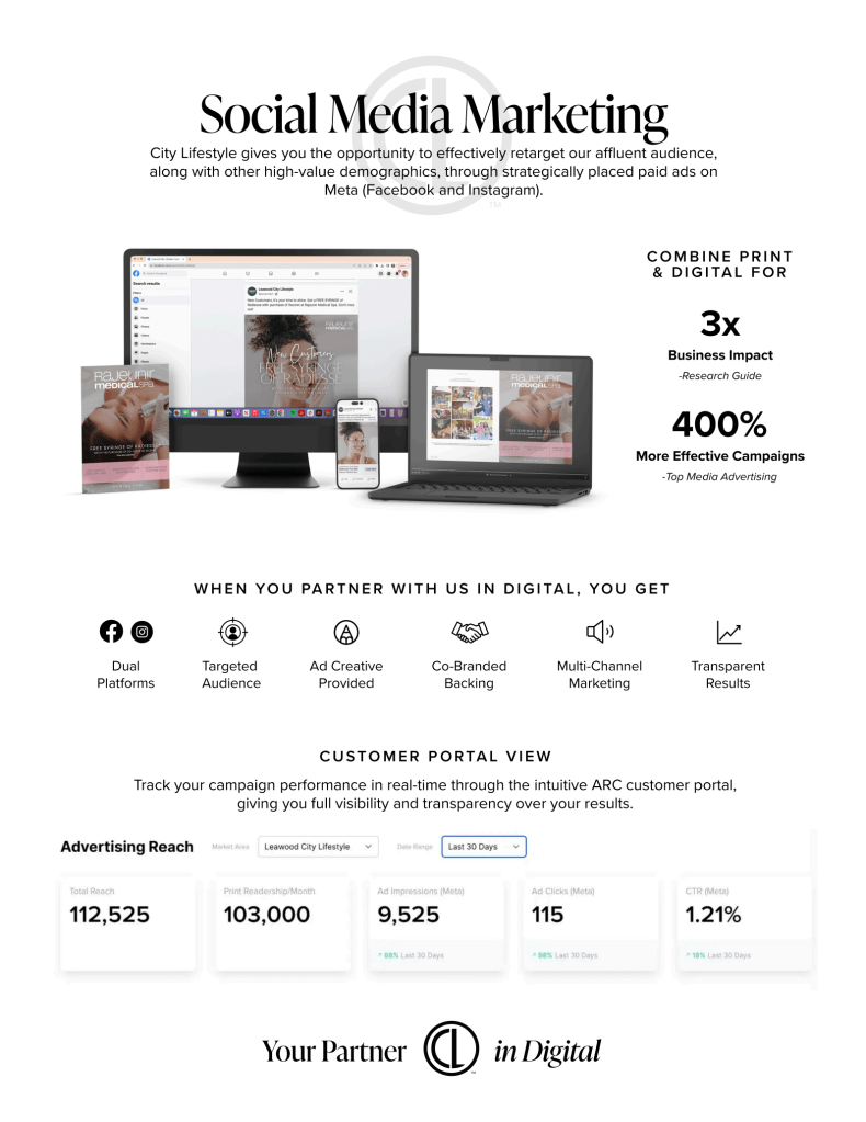 We’re excited to announce a brand-new UNIQUE opportunity to amplify your exposure beyond print—City Lifestyle is now offering professionally managed social media marketing campaigns on Facebook and Instagram.